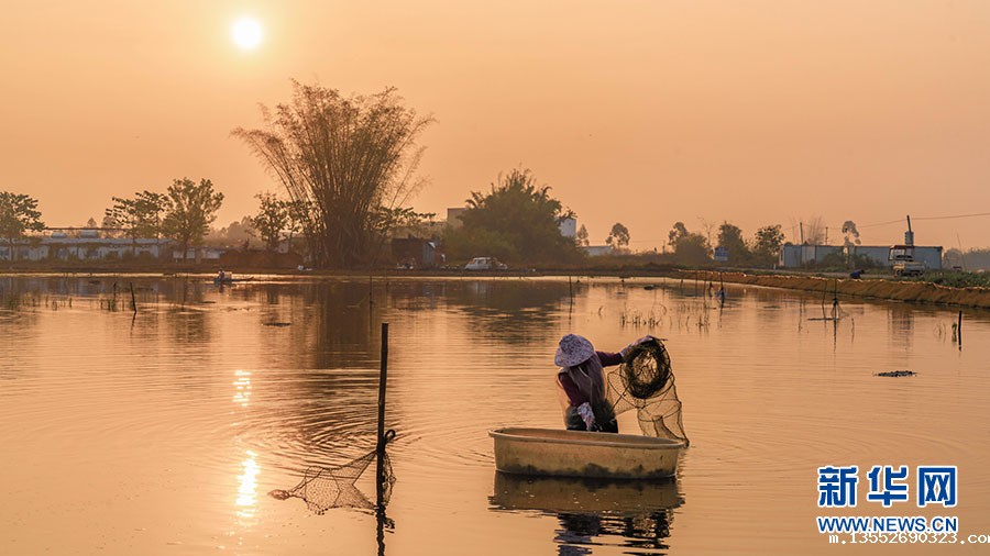 农户正在捕捞反季节小龙虾。韦伟海 摄