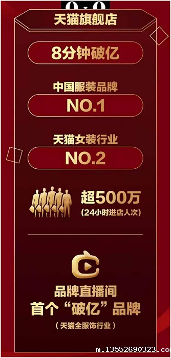 此外,双十一期间波司登单日直播观看量达到了356.45万,直播时长在天猫服饰商家自播排名中位列行业第一,还实现了真正的24小时不间断直播。波司登也成为天猫双十一活动中大服饰类直播种草成交额唯一破亿的直播间。