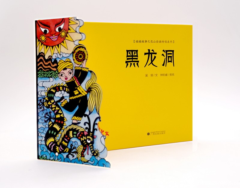 这种链接呈现在桂娃故事之花山岩画传说系列绘本《黑龙洞》和《灯笼山》上,未来还会有该系列的其他著作会相继出版。民族史诗与非遗融合,这不但是种艺术的表达,更是民族风貌的传承。这两本书的作者--出生于广西梧州的作家吴烜老师,同样是出生在广西兴业作为剪纸技艺传承人的钟昀睿老师,一位把桂娃与花山岩画的巧妙结合抒写成了故事里爱憎分明,正义勇敢的桂娃和红色小人等;一位把故事中栩栩如生的形象剪贴出来跃然在纸上。她们努力地把广西在地文化和花山岩画这个惊艳世界的传奇,与民族特色的灿烂以多元丰富的形式展现了出来,这种坚守和传承正如书中倾入人心的故事和剪纸技艺一样绵长隽永,精粹悠远。