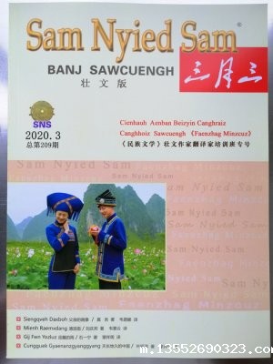 《民族文学》壮文作家翻译家培训班专号。 为让壮文读者共享中国当代文学最新成果,激励壮文作家翻译家的创作热情,近日,《民族文学》壮文作家翻译家培训班专号(Cienhauh Aenban Beizyin Canghraiz Canghhoiz Sawcuengh 《Faenzhag Minzcuz》)由广西三月三杂志社在《三月三》壮文版2020年第3期出版。 该专号用壮文翻译...