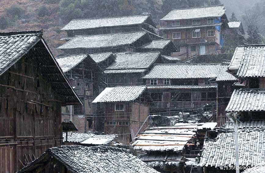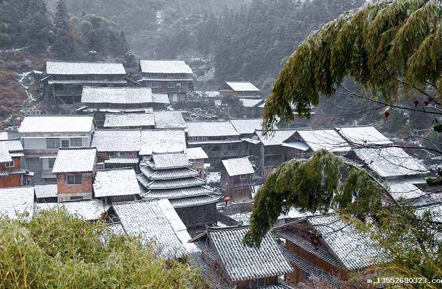 白雪皑皑的玉马村苗寨。龚普康摄