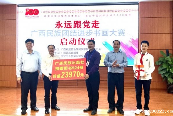 4月12日,“永远跟党走——广西民族团结进步书画大赛”启动仪式在南宁市天桃实验学校翠竹校区举行。此次大赛由广西壮族自治区民族宗教事务委员会主办,广西民族出版社承办。活动主题为“铸牢中华民族共同体意识,喜迎中国共产党成立100周年”。自治区民宗委党组成员、副主任翚永红,自治区民宗...