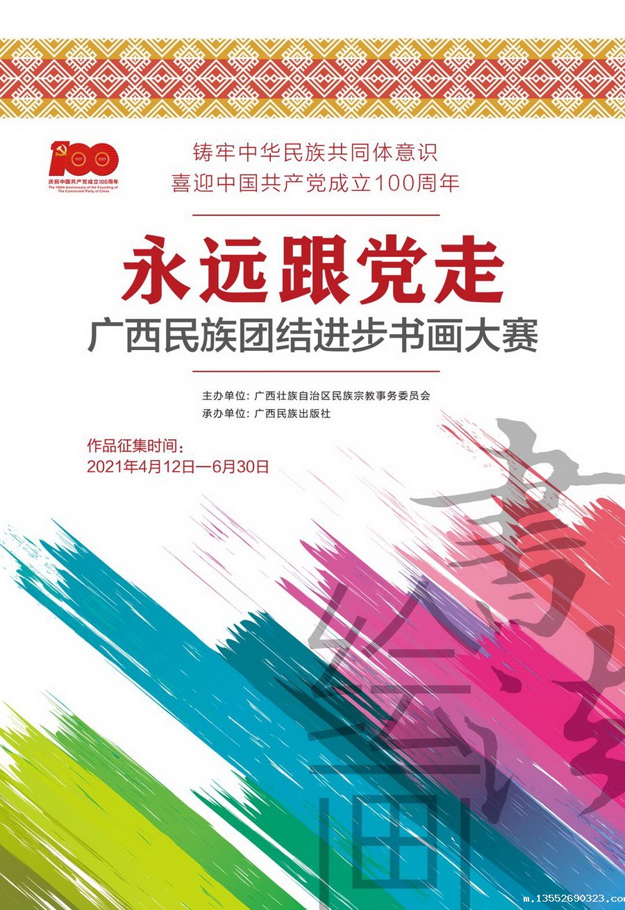 翚永红在启动仪式上讲话并宣布大赛正式启动。2021年是中国共产党成立100周年,是“十四五“规划的开局之年,是“两个一百年“奋斗目标的历史交汇点,是中华民族实现伟大复兴“中国梦“征程中具有里程碑意义的一年。在广西一年一度的民族传统节日“壮族三月三“到来的时候启动书画大赛,这是自治区民宗委牵头主办的“壮族三月三﹒和谐在八桂“活动版块的重要内容之一。此次书画大赛,面向全社会公开征集反映民族团结进步的书画作品,主要目的是借助书画的艺术手法,大力弘扬爱国主义精神,讴歌伟大的中国共产党,深入开展民族团结进步宣传教育活动,凝聚民心民智,铸牢中华民族共同体意识,让民族团结意识内化于心、外化于行、融化于众,坚定各族人民“永远跟党走“的信念,意义非凡。